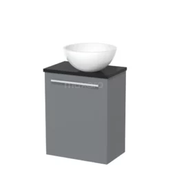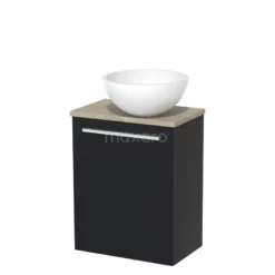 Toiletmeubel Met Waskom Mineraalmarmer Modulo Mat Zwart Vlak 41 Cm Lichtgrijs Eiken Blad