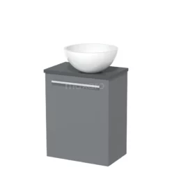 Toiletmeubel Met Waskom Mineraalmarmer Modulo Middengrijs Greeploos 41 Cm Lichtbruin Eiken Blad