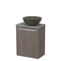 Toiletmeubel Met Waskom Natuursteen Modulo Donkerbruin Eiken Vlak 41 Cm Grijs Eiken Blad