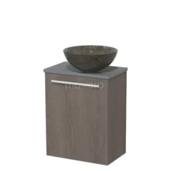 Toiletmeubel Met Waskom Natuursteen Modulo Donkerbruin Eiken Vlak 41 Cm Middengrijs Blad