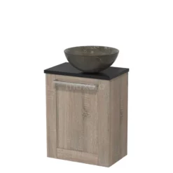 Toiletmeubel Met Waskom Natuursteen Modulo Grijs Eiken Vlak 41 Cm Lichtbruin Eiken Blad
