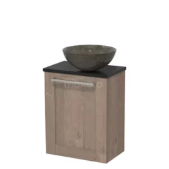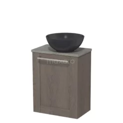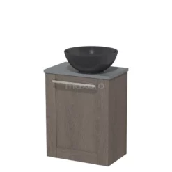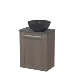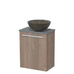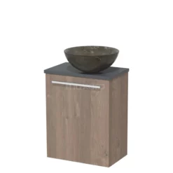 Toiletmeubel Met Waskom Natuursteen Modulo Middenbruin Eiken Vlak 41 Cm Donkergrijs Blad
