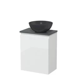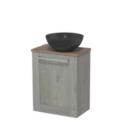 Toiletmeubel Met Waskom Quartz Modulo Donkergrijs Beton Vlak 41 Cm Lichtbruin Eiken Blad