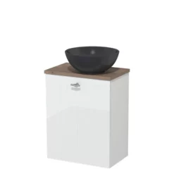 Toiletmeubel Met Waskom Quartz Modulo Hoogglans Wit Lamel 41 Cm Middenbruin Eiken Blad
