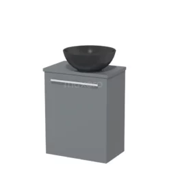 Toiletmeubel Met Waskom Solid Surface Modulo Donkergrijs Greeploos 41 Cm Middengrijs Blad