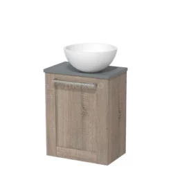 Toiletmeubel Met Waskom Solid Surface Modulo Donkergrijs Beton Vlak 41 Cm Middenbruin Eiken Blad