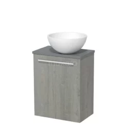 Toiletmeubel Met Waskom Solid Surface Modulo Hoogglans Wit Greeploos 41 Cm Middengrijs Blad