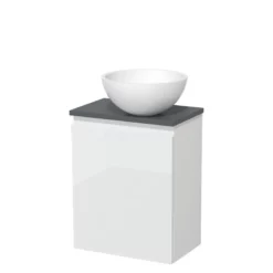 Toiletmeubel Met Waskom Solid Surface Modulo Hoogglans Wit Vlak 41 Cm Donkergrijs Blad