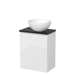 Toiletmeubel Met Waskom Solid Surface Modulo Hoogglans Wit Greeploos 41 Cm Mat Zwart Blad