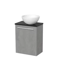 Toiletmeubel Met Waskom Solid Surface Modulo Lichtgrijs Beton Vlak 41 Cm Mat Zwart Blad