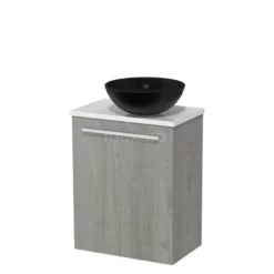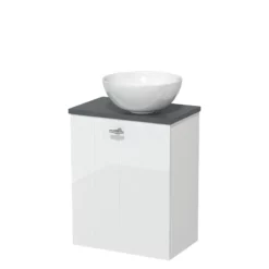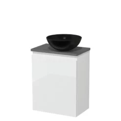 Toiletmeubel Met Waskom Keramiek Modulo Hoogglans Wit Greeploos 41 Cm Donkergrijs Beton Blad