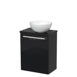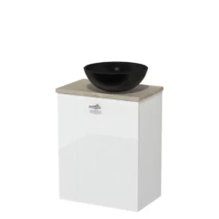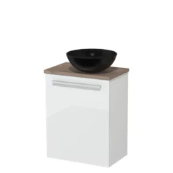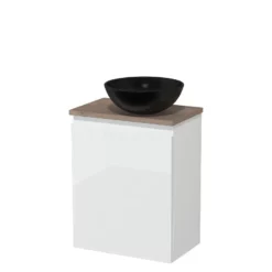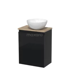 Toiletmeubel Met Waskom Keramiek Modulo Hoogglans Zwart Greeploos 41 Cm Lichtbruin Eiken Blad