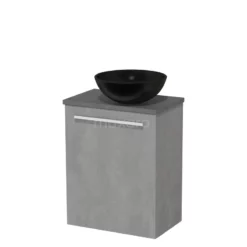 Toiletmeubel Met Waskom Keramiek Modulo Lichtgrijs Beton Vlak 41 Cm Donkergrijs Beton Blad