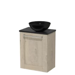 Toiletmeubel Met Waskom Keramiek Modulo Lichtbruin Eiken Vlak 41 Cm Donkergrijs Beton Blad